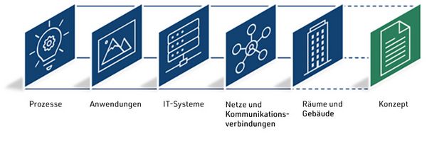 Der zentrale Leitgedanke des IT-Grundschutzes ist es, die Realität so genau wie möglich in einem Sicherheitskonzept zu modellieren und abzubilden. Dazu werden verschiedene Schichten betrachtet, die für eine umfassende Sicherheitsbetrachtung entscheidend sind.