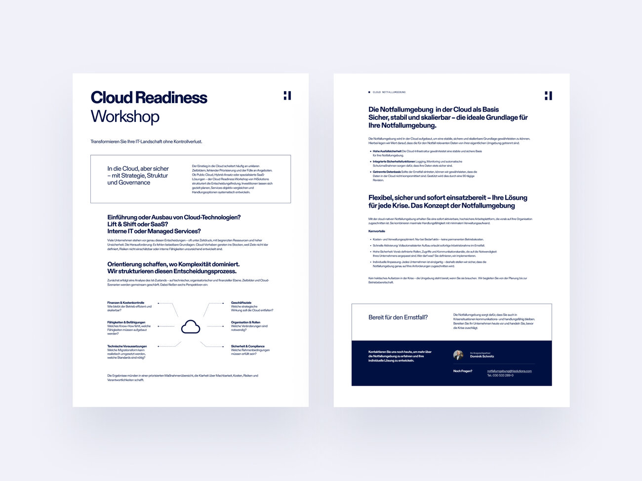 Der Einstieg in die Cloud scheitert häufig an unklaren Zielbildern, fehlender Priorisierung und einer Vielzahl unterschiedlicher Angebote. Ob Public Cloud, Hybrid-Ansatz oder spezialisierte SaaS-Lösungen, der Cloud Readiness Workshop von HiSolutions strukturiert Ihre Entscheidungsfindung. Investitionen lassen sich so gezielt planen, Services objektiv vergleichen und Handlungsoptionen systematisch ableiten.